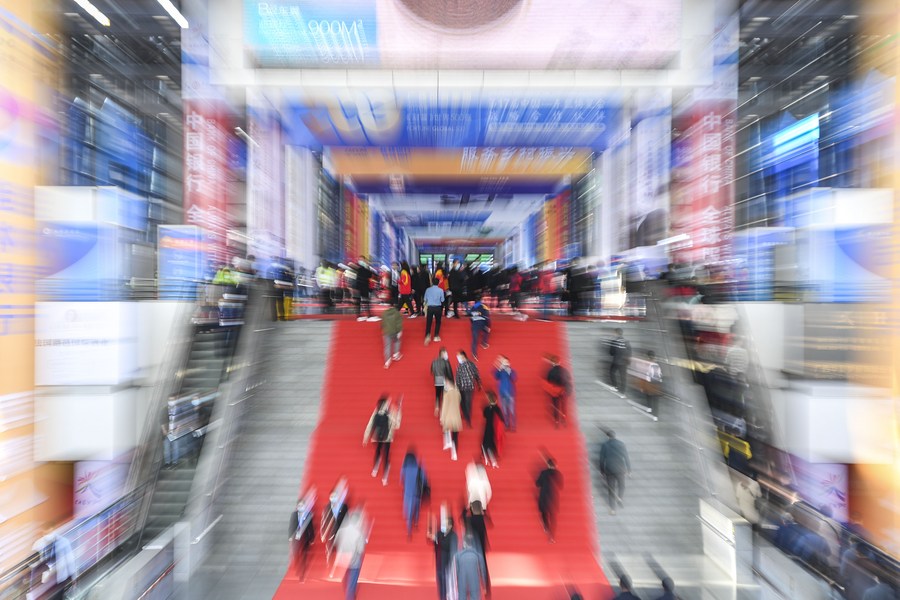 People visit the 17th China-ASEAN Expo at Nanning International Convention and Exhibition Center in Nanning, south China's Guangxi Zhuang Autonomous Region, Nov. 30, 2020. (Xinhua/Cao Yiming)