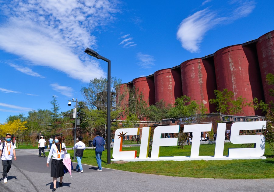 People visit the 2021 China International Fair for Trade in Services (CIFTIS) at Shougang Park in Beijing, capital of China, Sept. 6, 2021. (Xinhua/Xu Qin)
