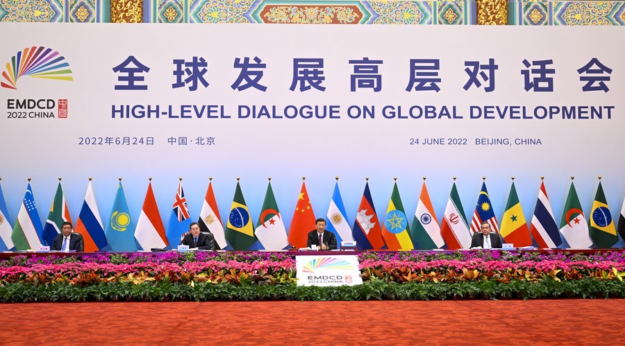 Chinese President Xi Jinping chairs the High-level Dialogue on Global Development via video link in Beijing, capital of China, June 24, 2022. Xi delivered an important speech titled "Forging High-quality Partnership for a New Era of Global Development". (Xinhua/Rao Aimin)