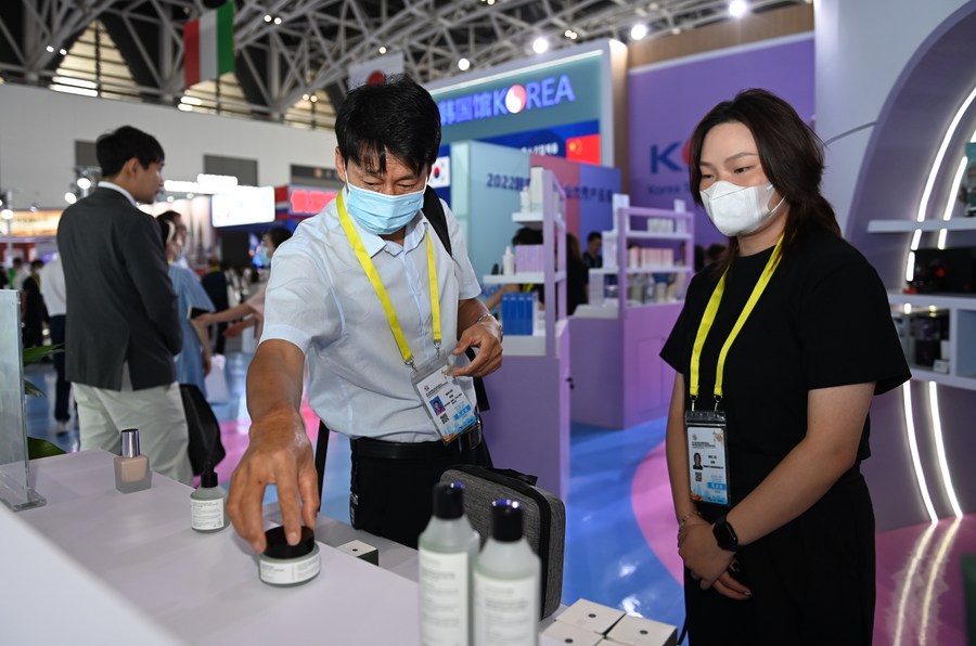 In the pavilion of the Republic of Korea (ROK), more than 100 items from 34 ROK companies are on display, including cosmetics products that are popular in China.