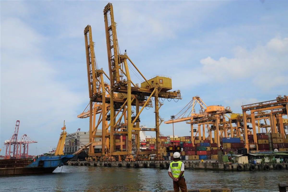A worker observes construction at a harbor in Colombo, Sri Lanka, commissioned by China Harbour Engineering Co Ltd on Dec 1. [Photo/XINHUA]